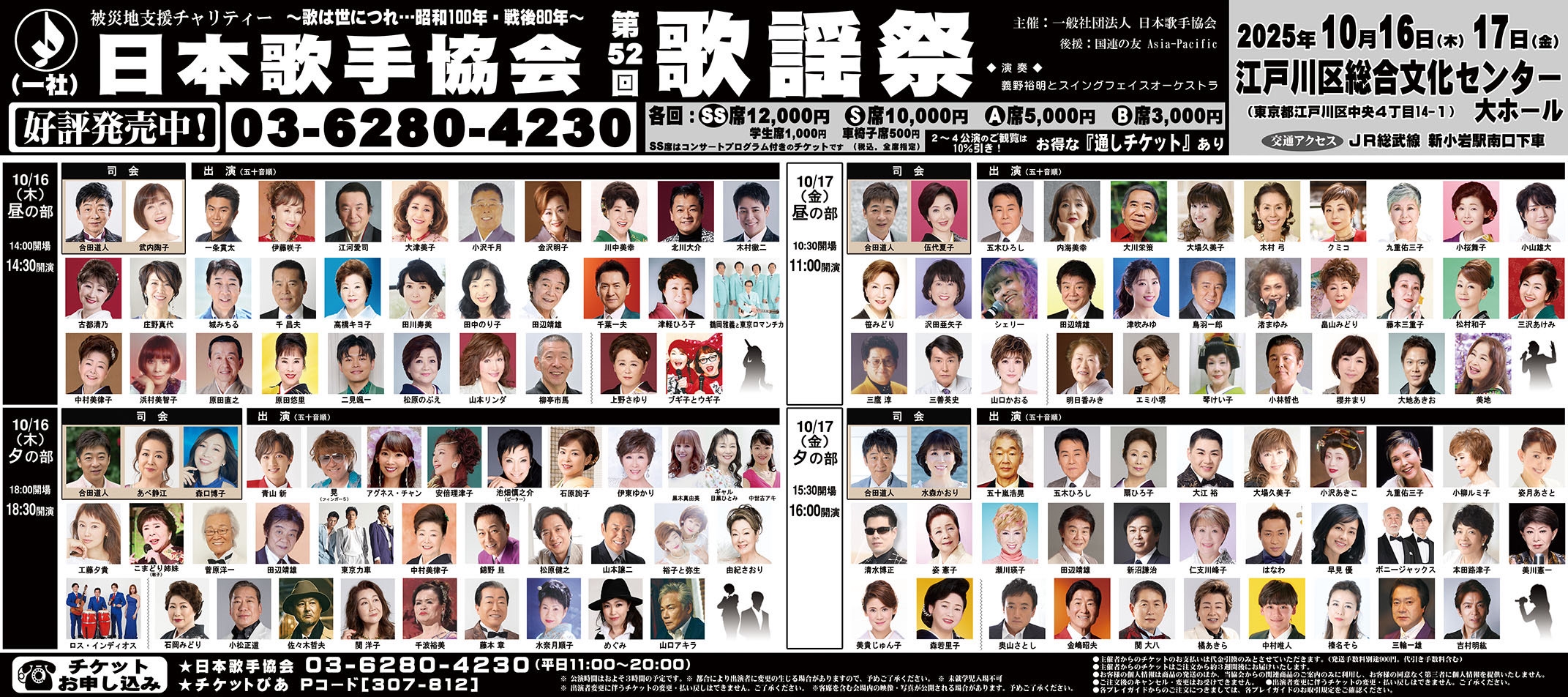 問)日本歌手協会事務局 03-6280-4230 (平日11時~20時)
