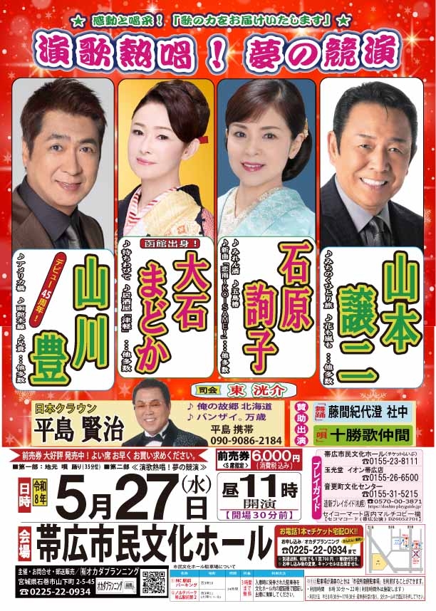 <コンサート>「演歌熱唱!夢の競演」出演決定!(北海道帯広市)