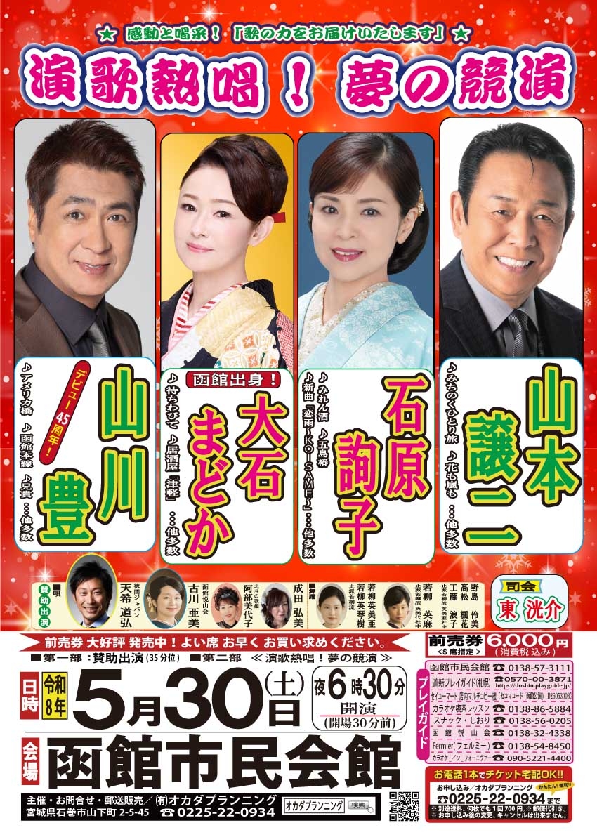 <コンサート>「演歌熱唱!夢の競演」出演決定!(北海道函館市)